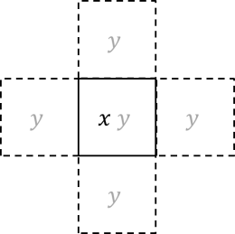 Selanjutnya, sifat unik kanan berarti untuk setiap persegi x, hanya boleh ada paling banyak satu persegi y yang mengandung sisi yang sama. Ini jelas tidak mungkin, karena dari gambar di atas, setidaknya ada satu persegi yang bisa memiliki lima persegi y yang berbagi sisi dengannya. Karena itulah relasi ini tidak bersifat unik kanan, yang juga dengan cara yang sama dapat dibuktikan bahwa relasi ini tidak unik kiri.
