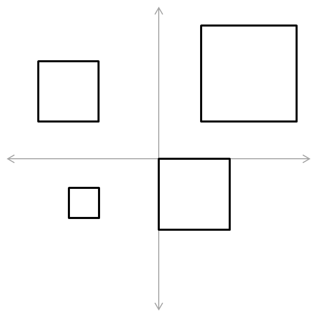 Dalam contoh-contoh sebelumnya, himpunan yang diberikan memiliki sedikit anggota. Namun persegi yang sifatnya seperti yang disebutkan di atas ada banyak sekali. Ada tak berhingga! Gambar di bawah ini hanya memperlihatkan empat di antaranya.