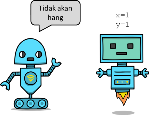 Sementara jika NCEK diberikan input TAMTAM dengan x=1 dan y=0, NCEK akan menyimpulkan bahwa TAMTAM akan hang.